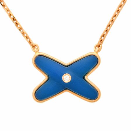 送料無料 ショーメ CHAUMET ジュ ドゥ リアン ブルーアゲート ダイヤモンド ネックレス K18PG ペンダント 085106【中古】