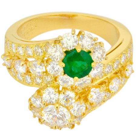 4. ヴァンクリーフ&アーペル Van Cleef&Arpels スノーフレイク ダブルフラワー ダイヤモンド エメラルド リング K18YG #12.5 ヴィンテージ フルーレット【中古】