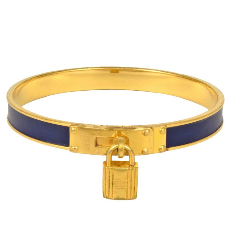 4. エルメス HERMES ケリー バングル ブレスレット ネイビー ゴールド【中古】