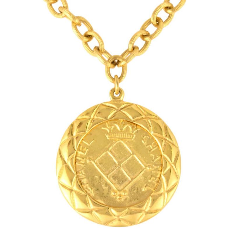 3. シャネル CHANEL ネックレス ココマーク マトラッセ メタル ゴールド メダル メダリオン サークル プレート【中古】