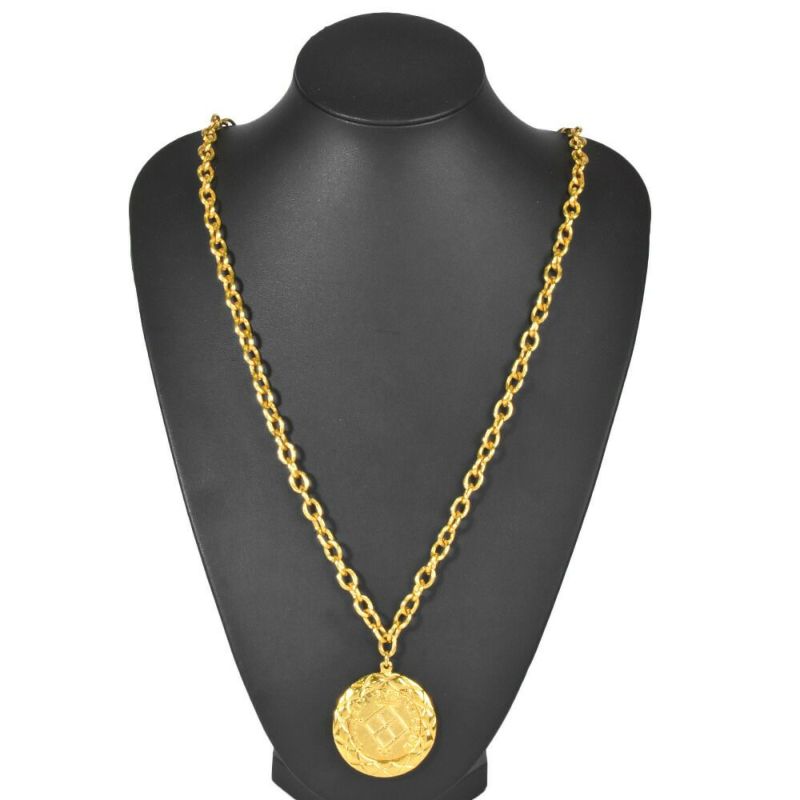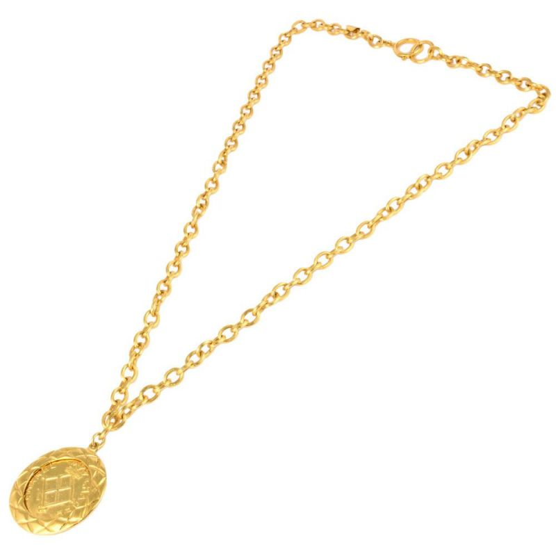 送料無料 シャネル CHANEL ネックレス ココマーク マトラッセ メタル ゴールド メダル メダリオン サークル プレート【中古】