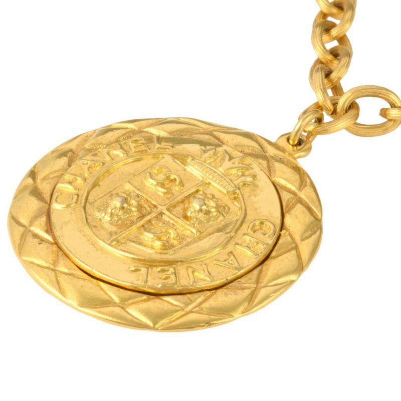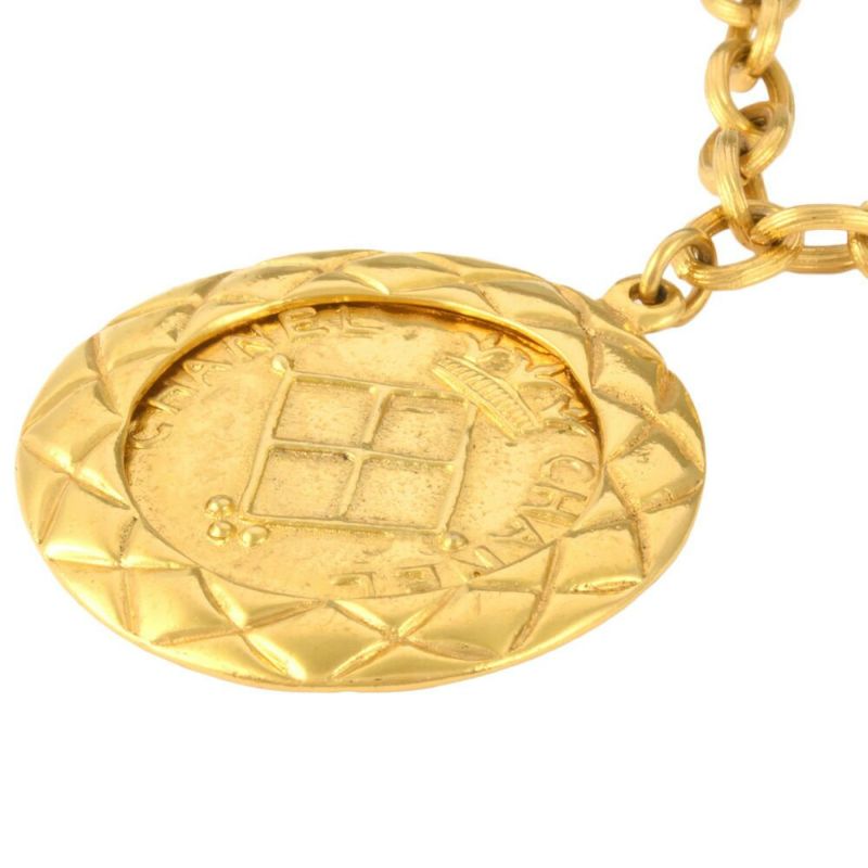 4. シャネル CHANEL ネックレス ココマーク マトラッセ メタル ゴールド メダル メダリオン サークル プレート【中古】