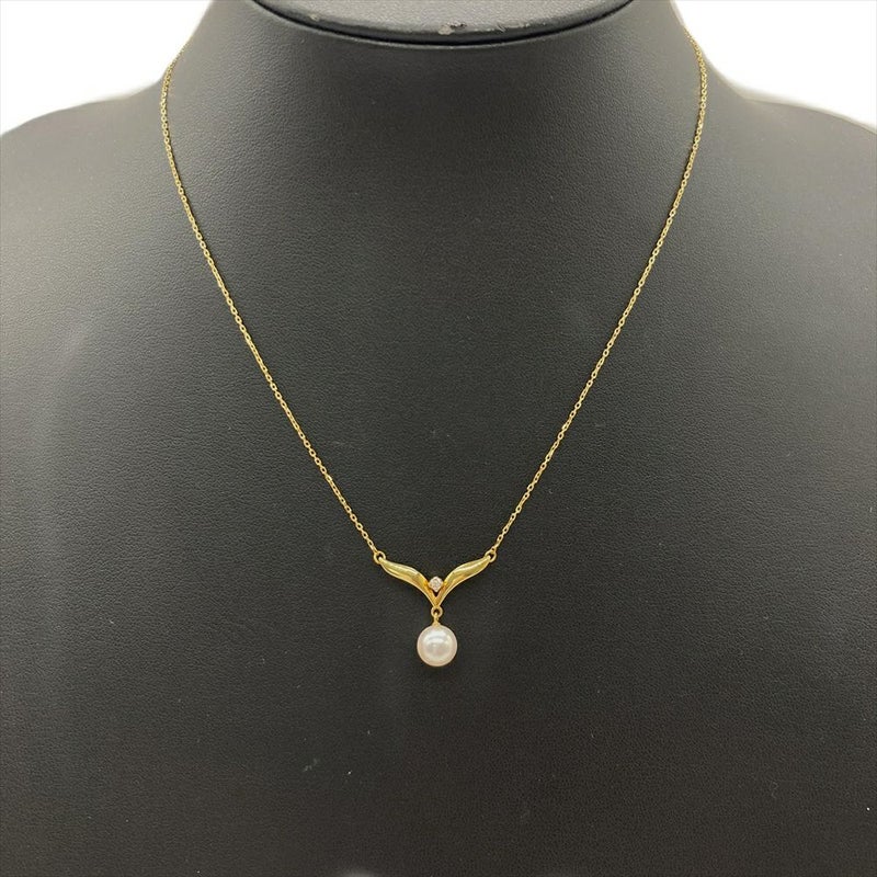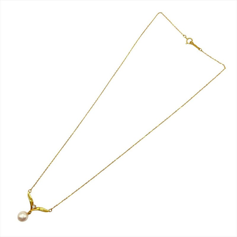ミキモト MIKIMOTO パール デザイン ネックレス ダイヤモンド K18YG 2.6g イエローゴールド 真珠 7.3mm レディース【中古】