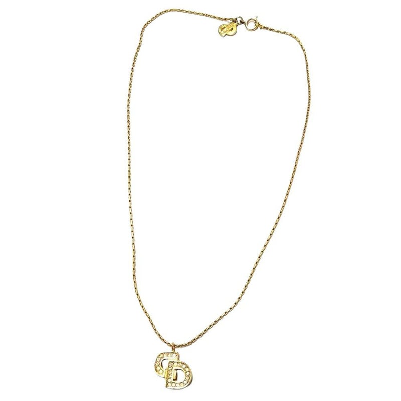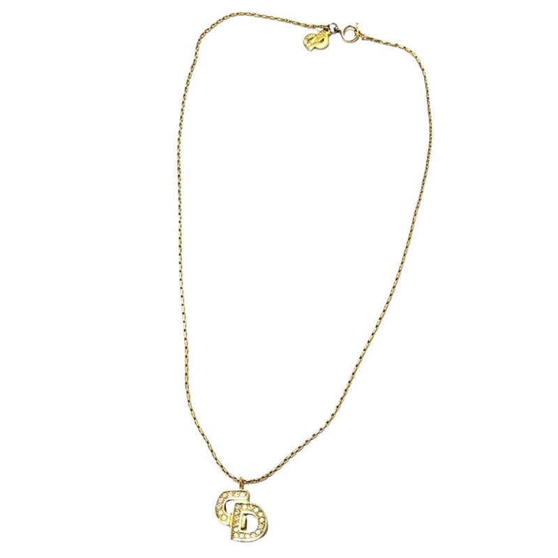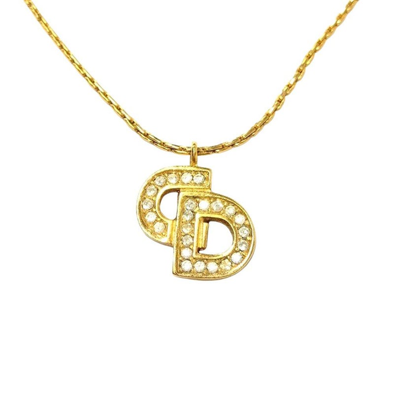 3. クリスチャンディオール Christian Dior チョーカー ラインストーン GPg ゴールド CD ロゴ ネックレス【中古】