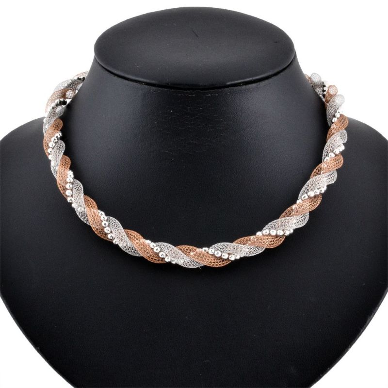 3. La Collana ラ・コラーナ メッシュ デザイン ネックレス K18WG 20.5(マグネット含む)g K18PG チョーカー コンビ ピンクゴールド ホワイトゴールド レディース【中古】