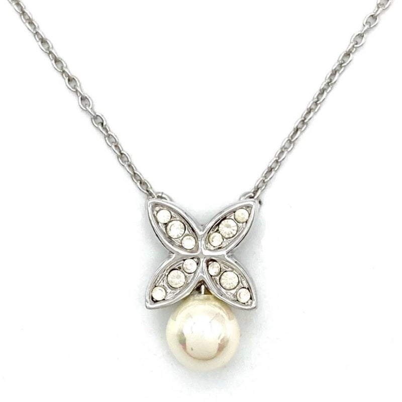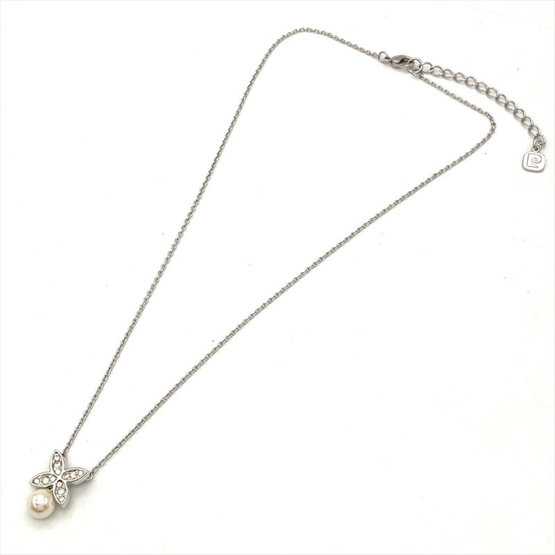 ピエールカルダン Pierre Cardin フェイクパール フラワー ネックレス メタル シルバー ラインストーン レディース【中古】