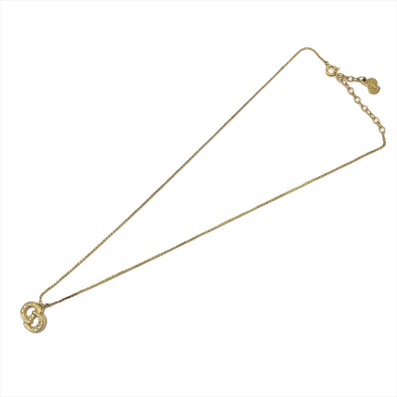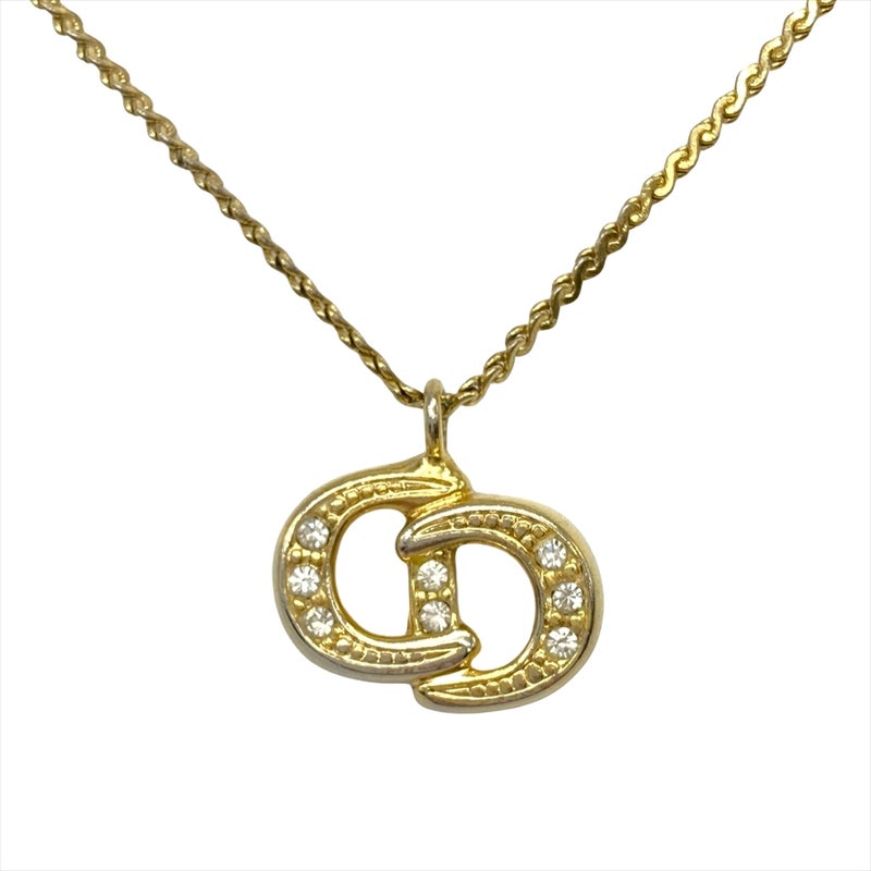 4. クリスチャンディオール Christian Dior CDロゴ ラインストーン ネックレス メタル ゴールド【中古】