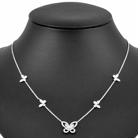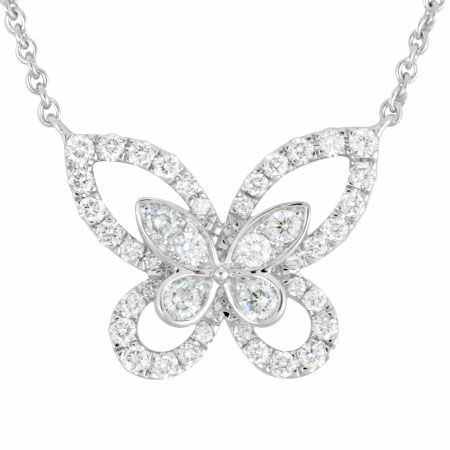 5. グラフ GRAFF ミニ バタフライ シルエット ダイヤモンド ペンダント K18WG ネックレス【中古】