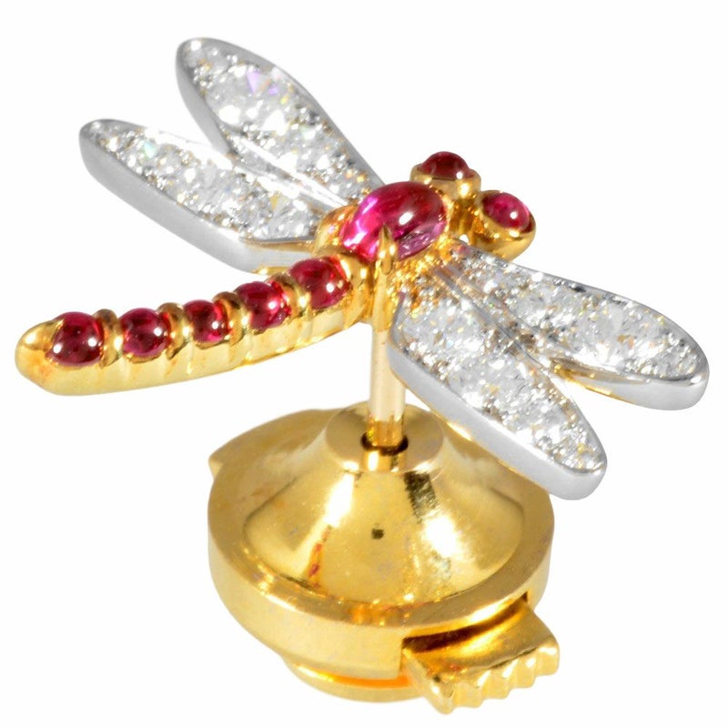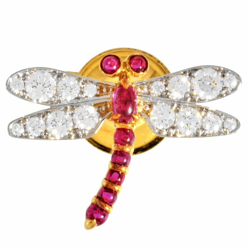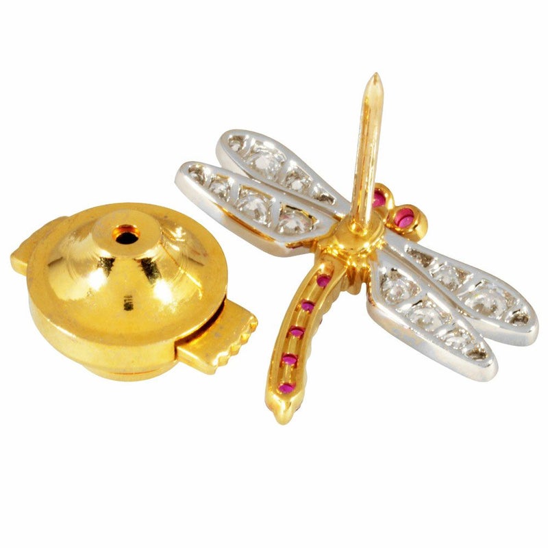 5. ギメル Gimel とんぼ ブローチ ダイヤモンド 0.341ct K18YG 1.7g ルビー 0.266ct ユニセックス【中古】