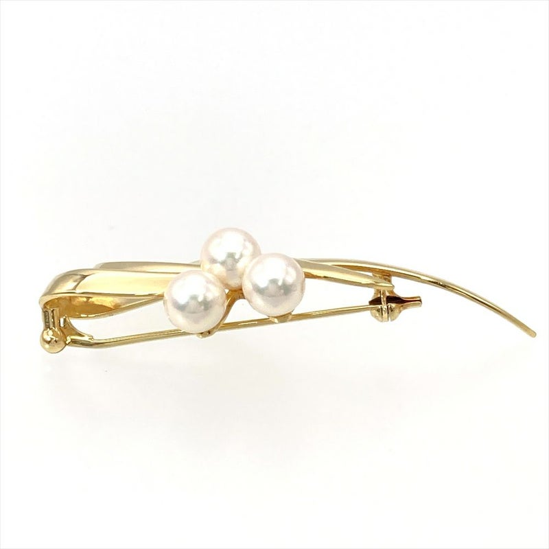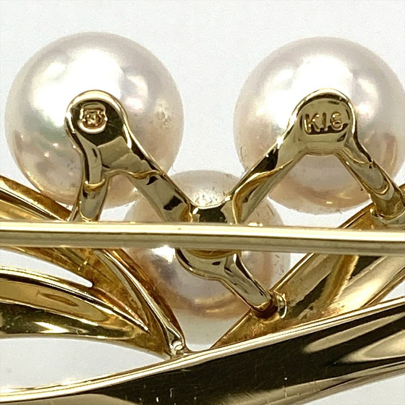 5. ミキモト MIKIMOTO 3P パール 6.0mm ブローチ K18YG 7.5g 真珠 イエローゴールド レディース【中古】