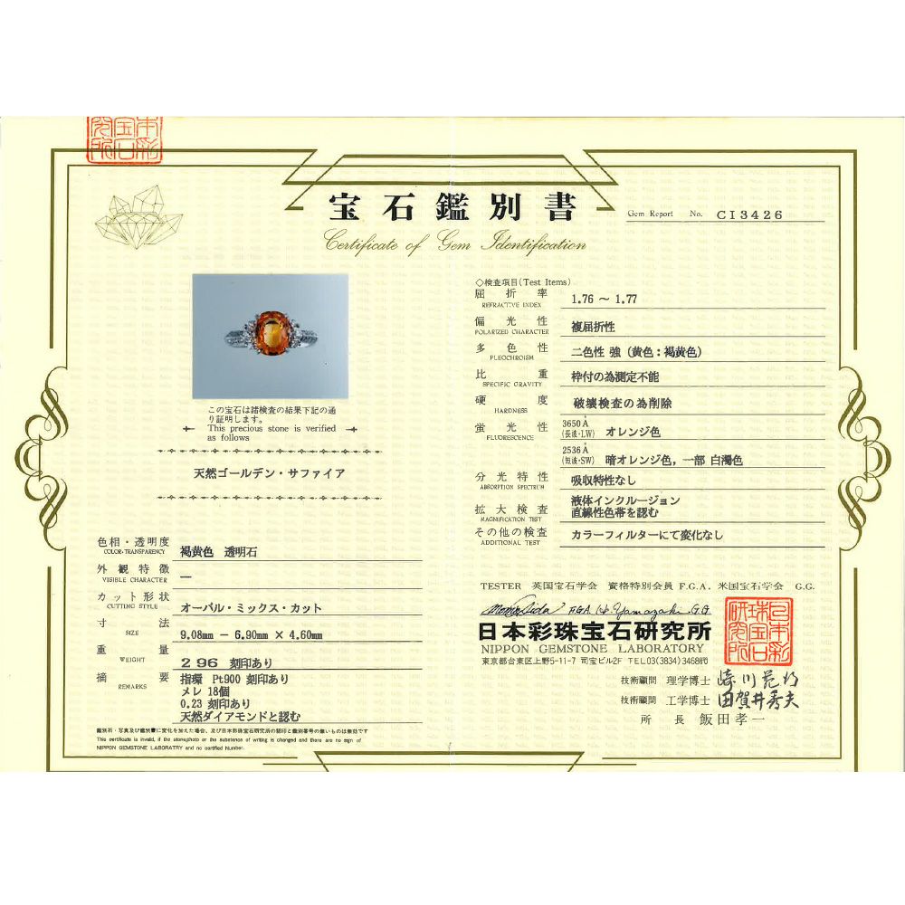 他の画像を見る リング 指輪 サファイア 2.96ct 約9.5号 Pt900 5.3g オレンジ ゴールデン ダイヤモンド 0.23ct プラチナ レディース【中古】 ランク7 通常価格 ¥ 240,000 当サイト価格 ¥ 235,200 税込 カートに入れる お気に入りに登録する