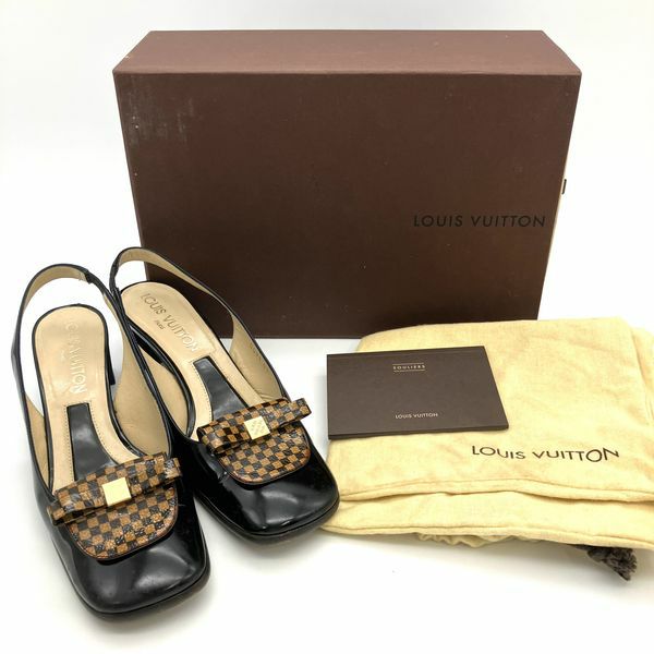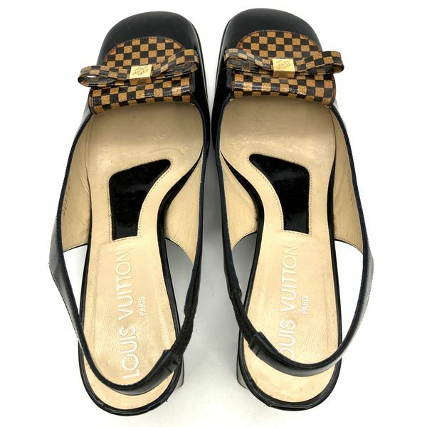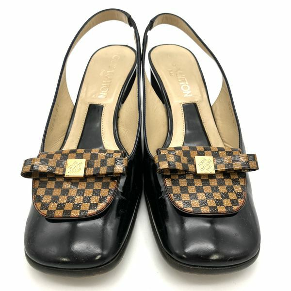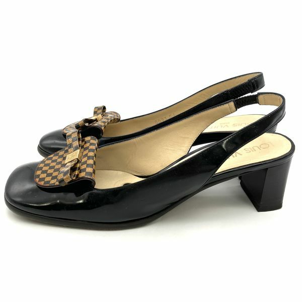 5. ルイヴィトン LOUIS VUITTON ダミエ パンプス エナメル 0091GI ブラック バックストラップ 35 1/2 レディース【中古】