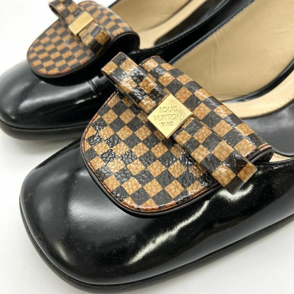 4. ルイヴィトン LOUIS VUITTON ダミエ パンプス エナメル 0091GI ブラック バックストラップ 35 1/2 レディース【中古】