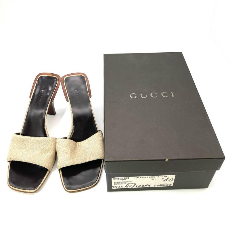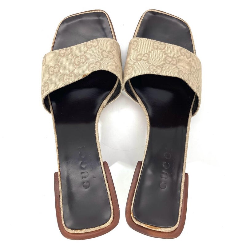 5. グッチ GUCCI サンダル GGキャンバス ベージュ 24cm【中古】