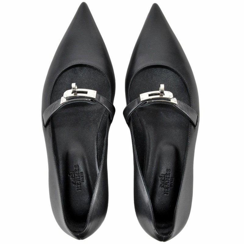 4. エルメス HERMES ケリー バレエシューズ カーフ ブラック ポインテッドトゥ フラットシューズ レディース【中古】