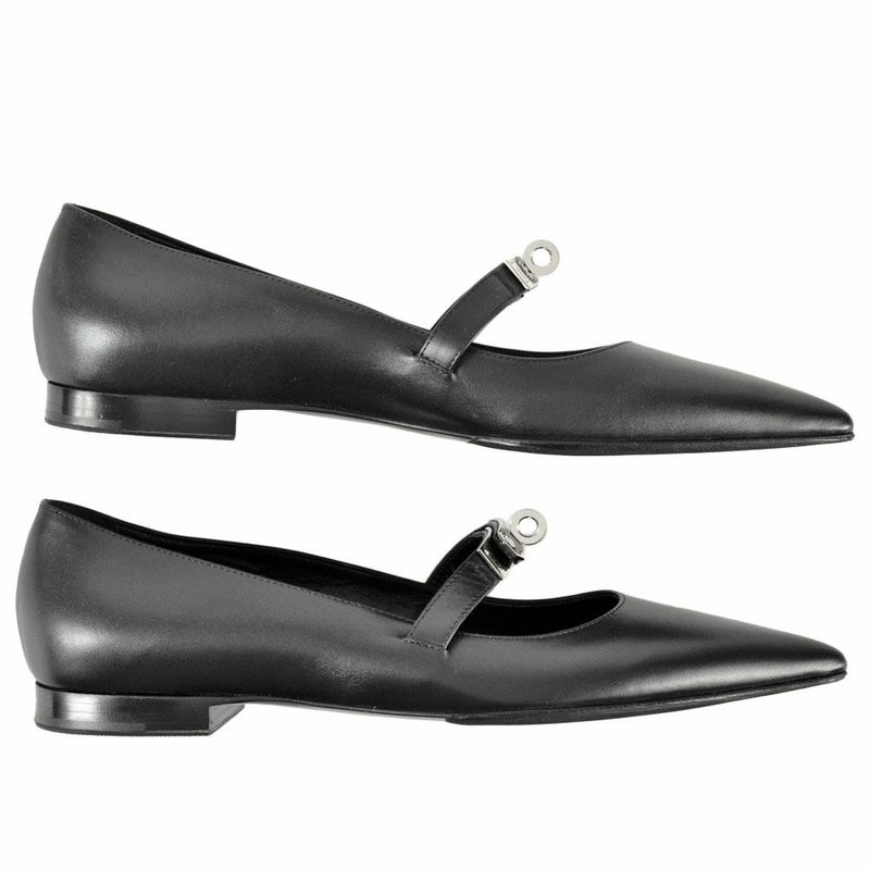 3. エルメス HERMES ケリー バレエシューズ カーフ ブラック ポインテッドトゥ フラットシューズ レディース【中古】