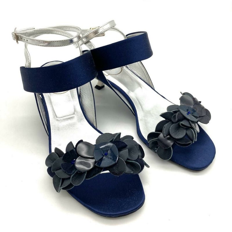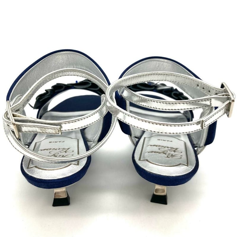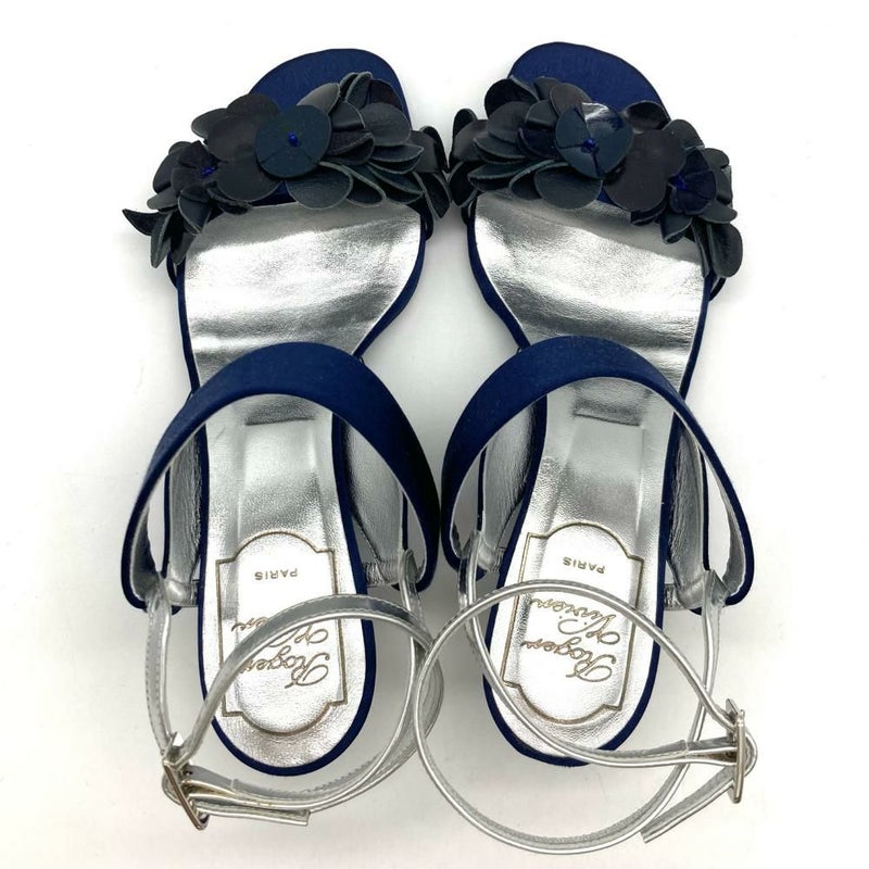 4. ロジェヴィヴィエ Roger vivier フラワーモチーフ サンダル ネイビー 22.0cm レディース【中古】