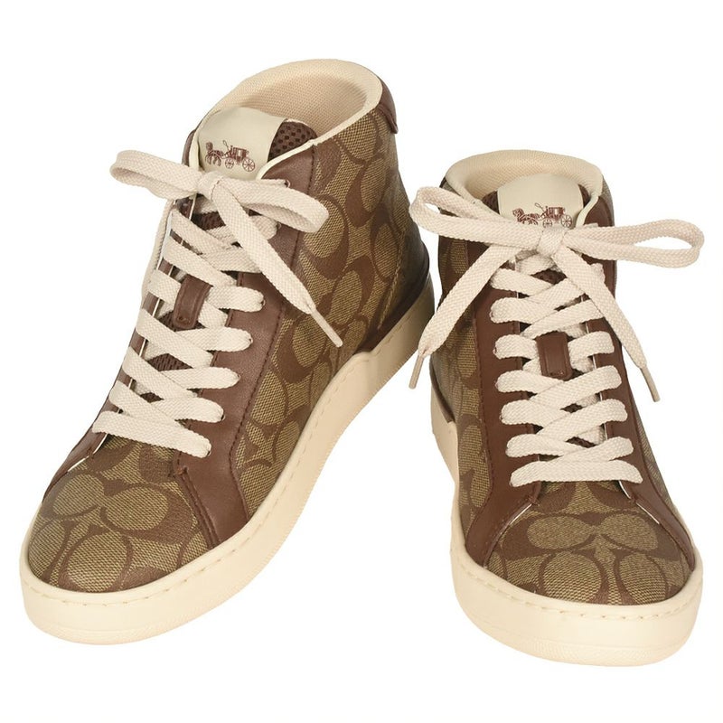 5. コーチ COACH クリップ ハイ トップ スニーカー コーティングキャンバス レザー ラバーソール G5367 ベージュ レディース【中古】