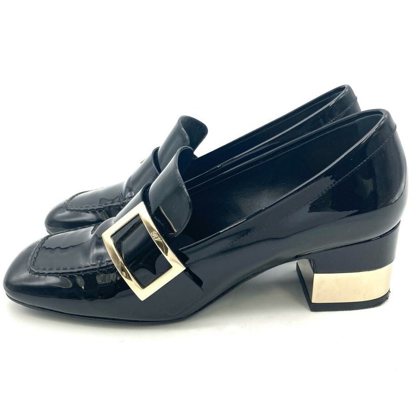 4. ロジェヴィヴィエ Roger vivier ゴールドプレート ヒール パンプス エナメル ブラック 22.5cm レディース【中古】