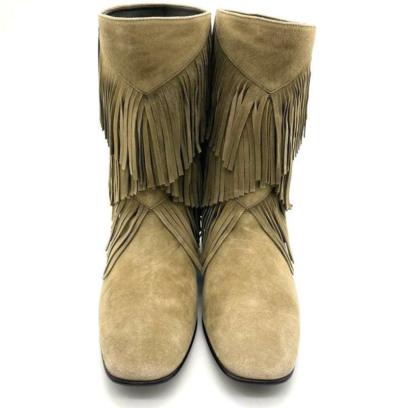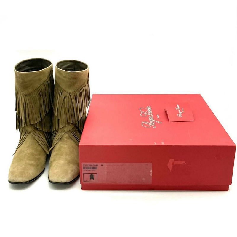 4. ロジェヴィヴィエ Roger vivier フリンジ ブーツ スウェード ベージュ 22.0cm【中古】