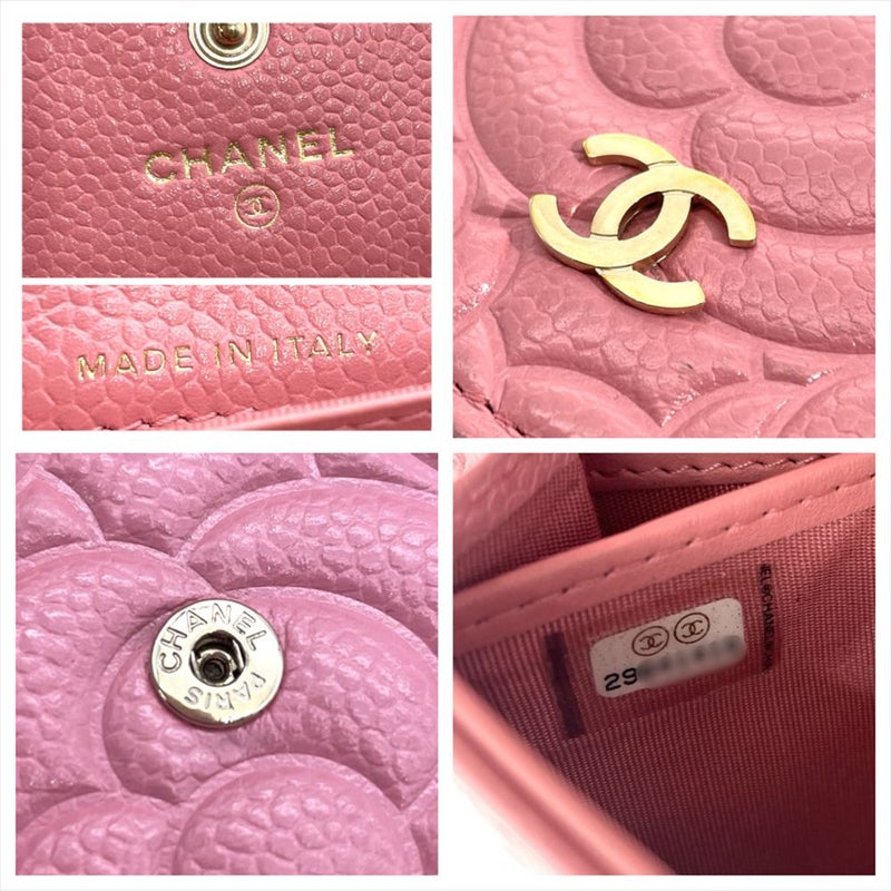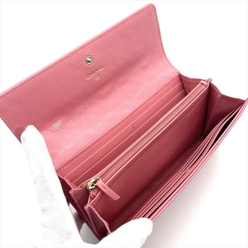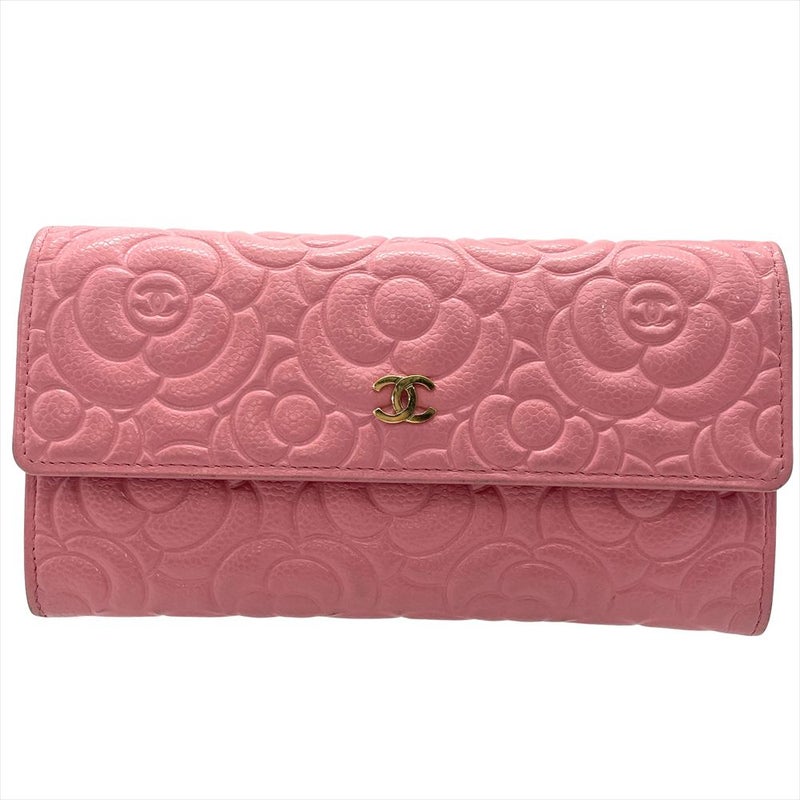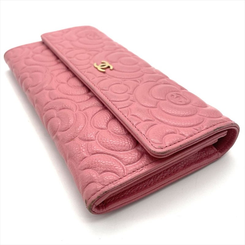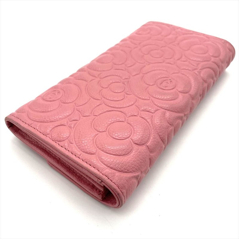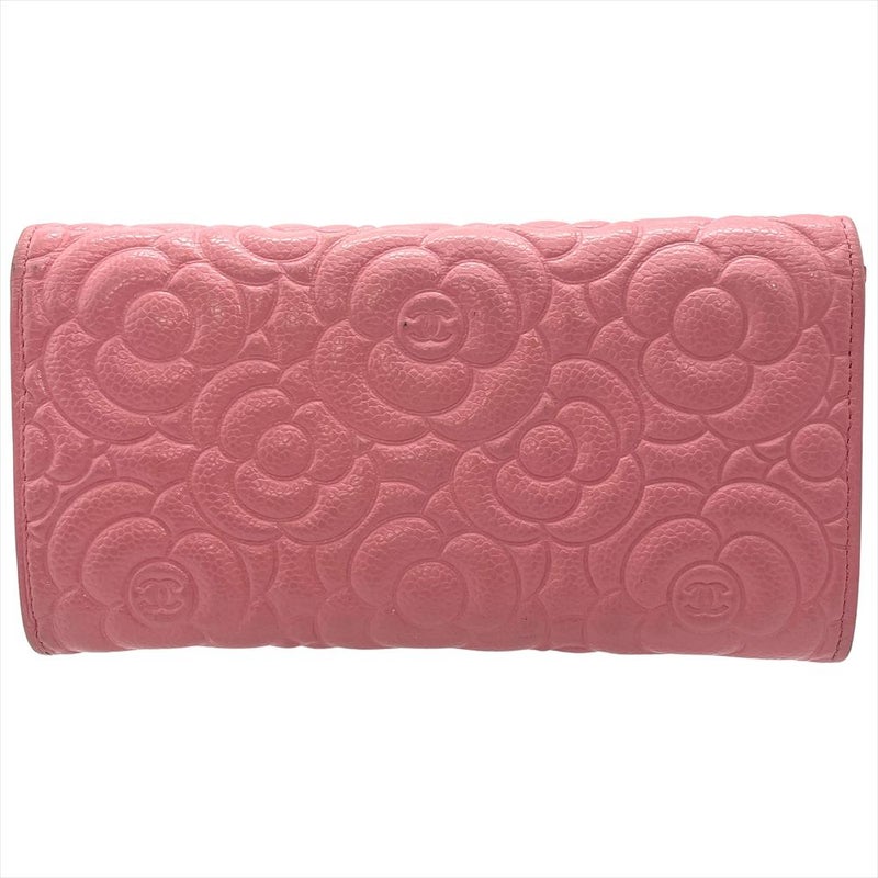 3. シャネル CHANEL ロングフラップ カメリア ココマーク 長財布 カーフスキン A82283 ピンク ゴールド金具 レディース【中古】