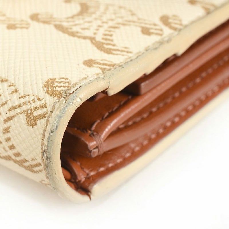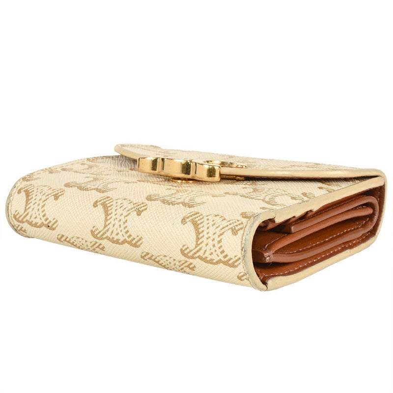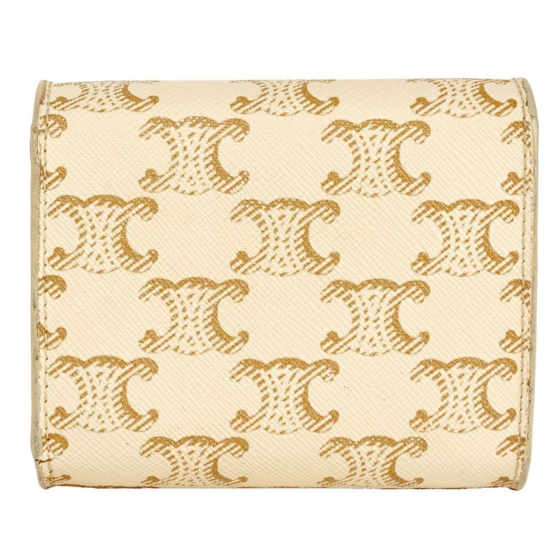 5. セリーヌ CELINE トリオンフ スモールフラップウォレット 三つ折り財布 PVCコーティングキャンバス レザー アイボリー ブラウン ゴールド金具 レディース【中古】