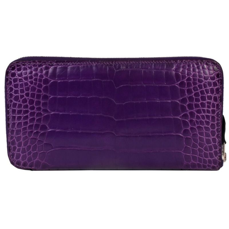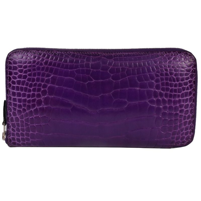 4. エルメス HERMES アザップ ロング クラシック ラウンドファスナー アリゲーター □P刻印(2012年製造)刻印 カシス シルバー金具 長財布【中古】
