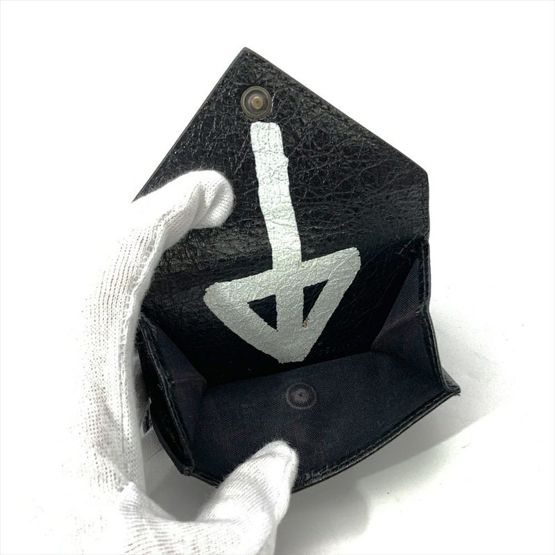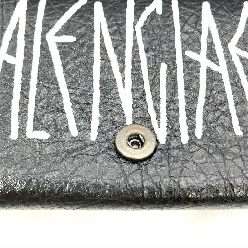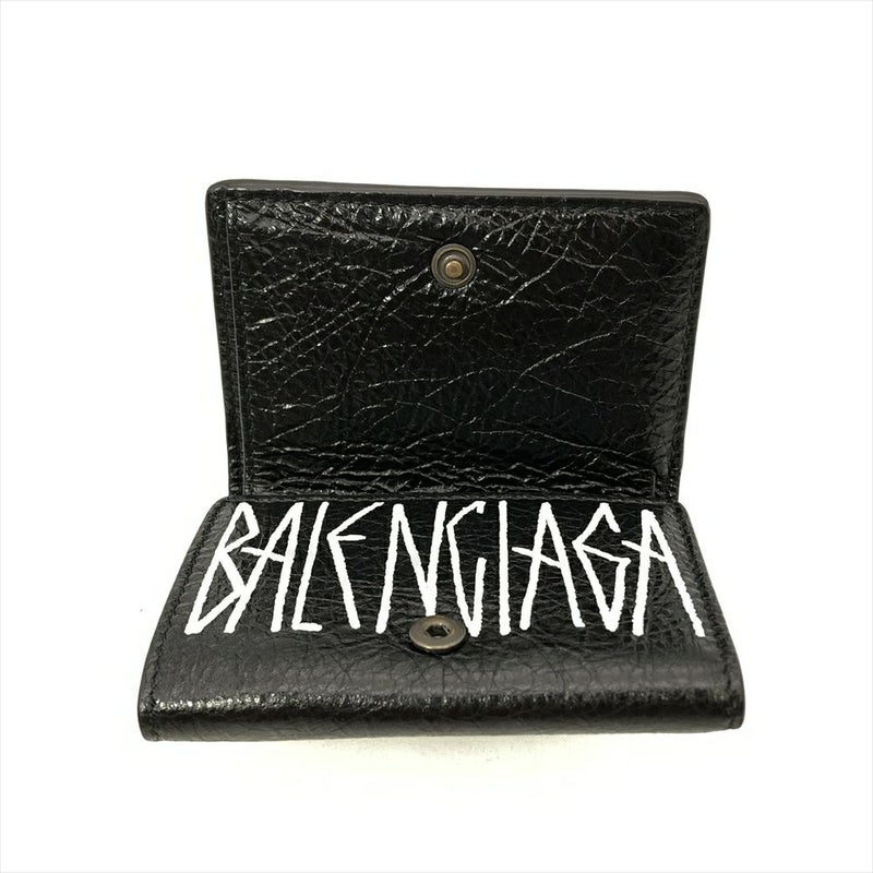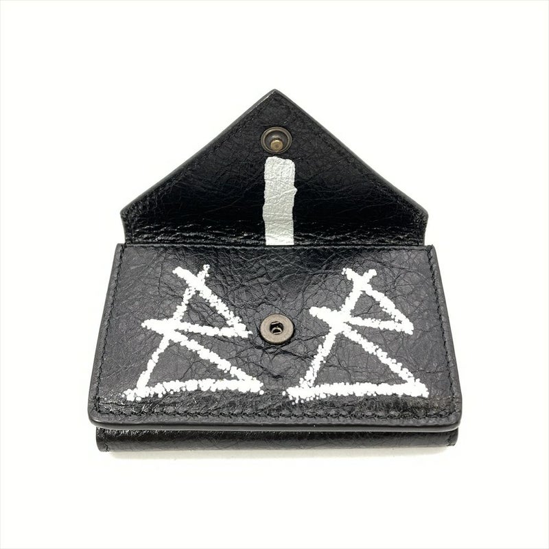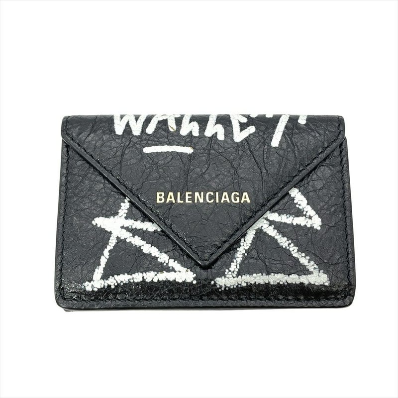 バレンシアガ BALENCIAGA ペーパー ミニウォレット 三つ折り財布 レザー 391446 ブラック グラフィティ【中古】