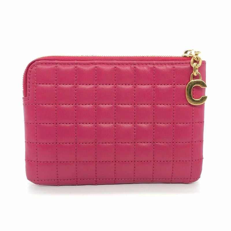 CELINE セリーヌ キルティング コインケース 財布 コンパクトウォレット 小銭入れ 小物入れ ポーチ レディース ピンク 赤系 Cチャーム