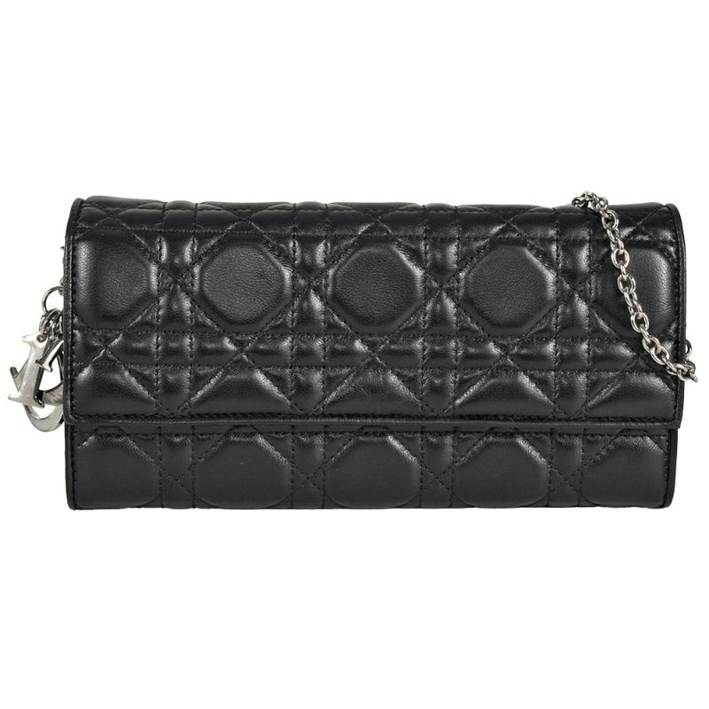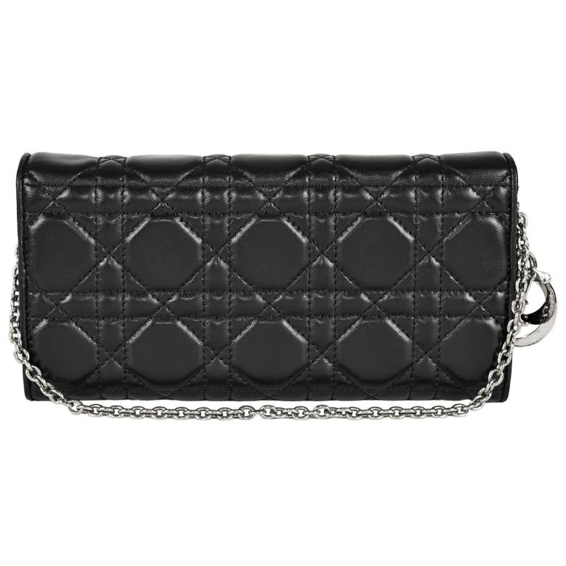 ディオール Dior レディディオール カナージュ チェーンウォレット 長財布 レザー CAL43060P ノワール シルバー金具【中古】