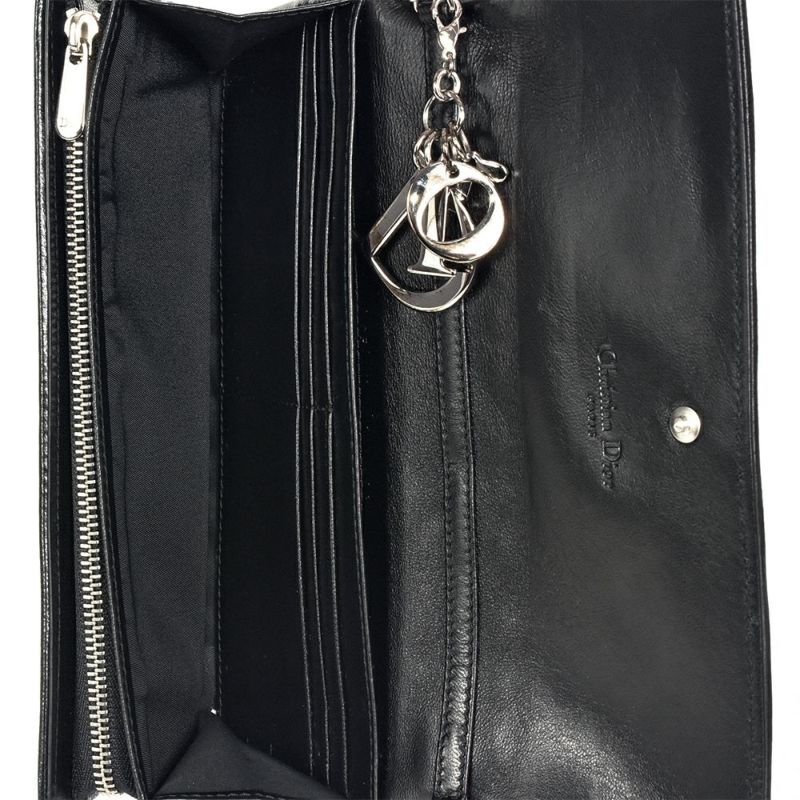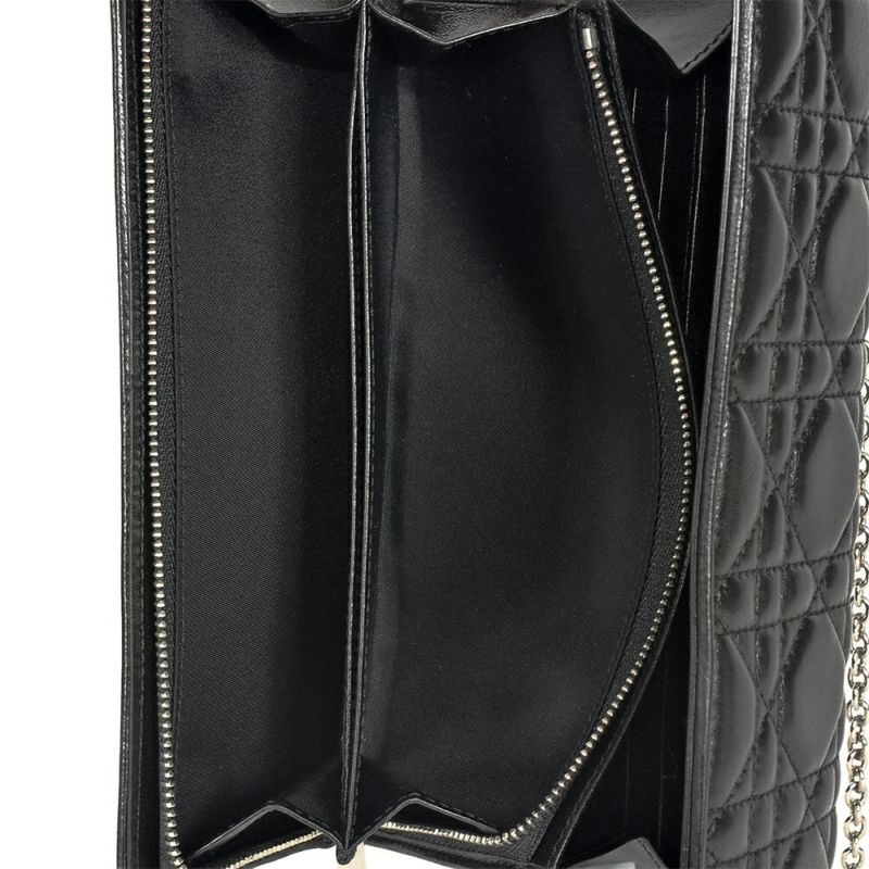 5. ディオール Dior レディディオール カナージュ チェーンウォレット 長財布 レザー CAL43060P ノワール シルバー金具【中古】