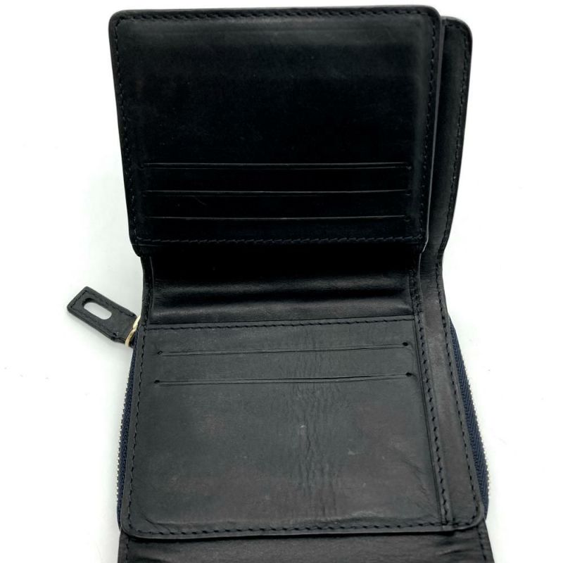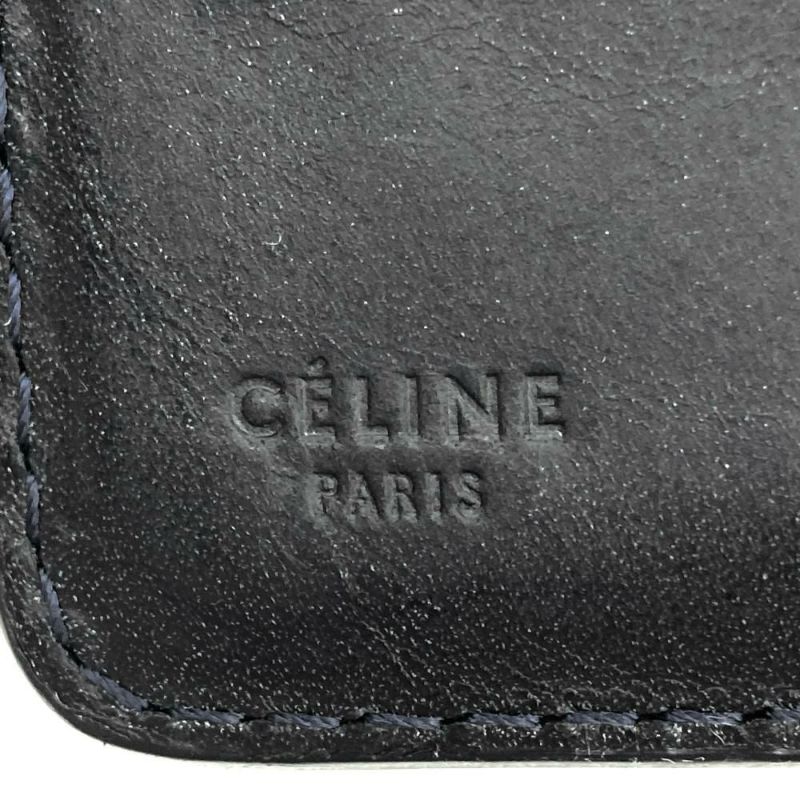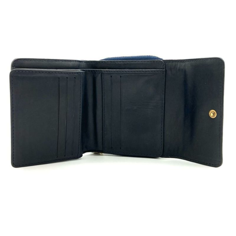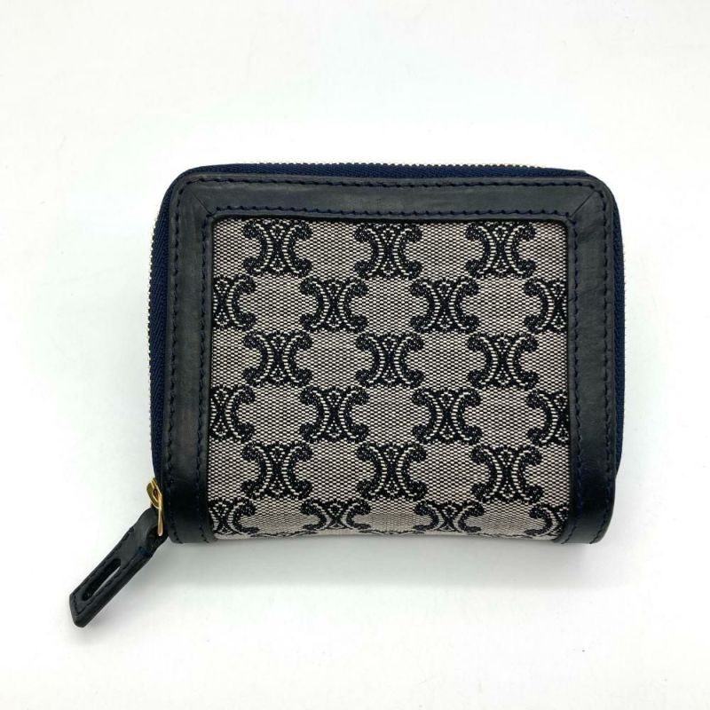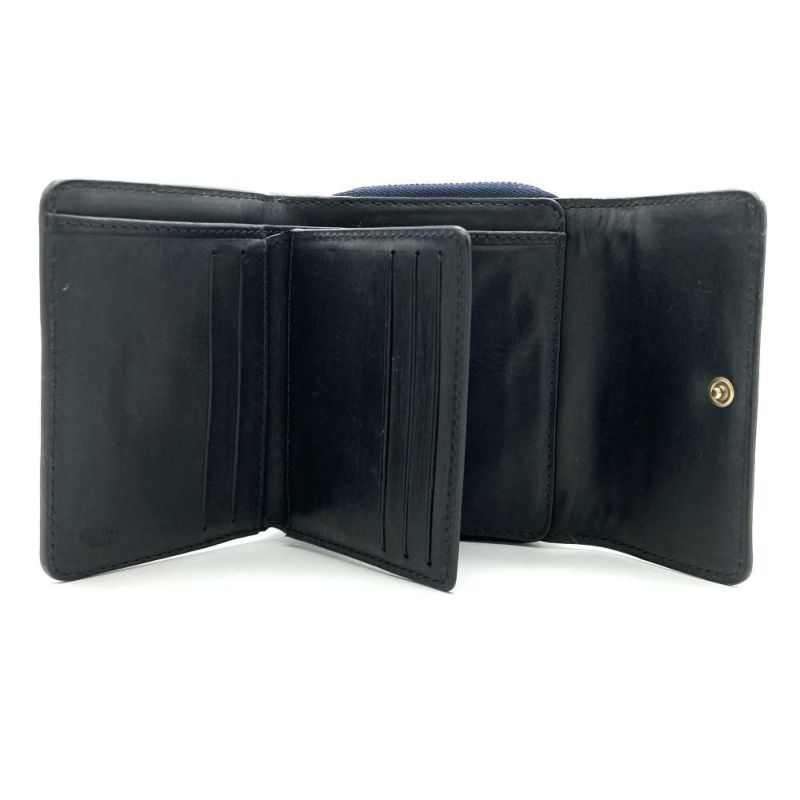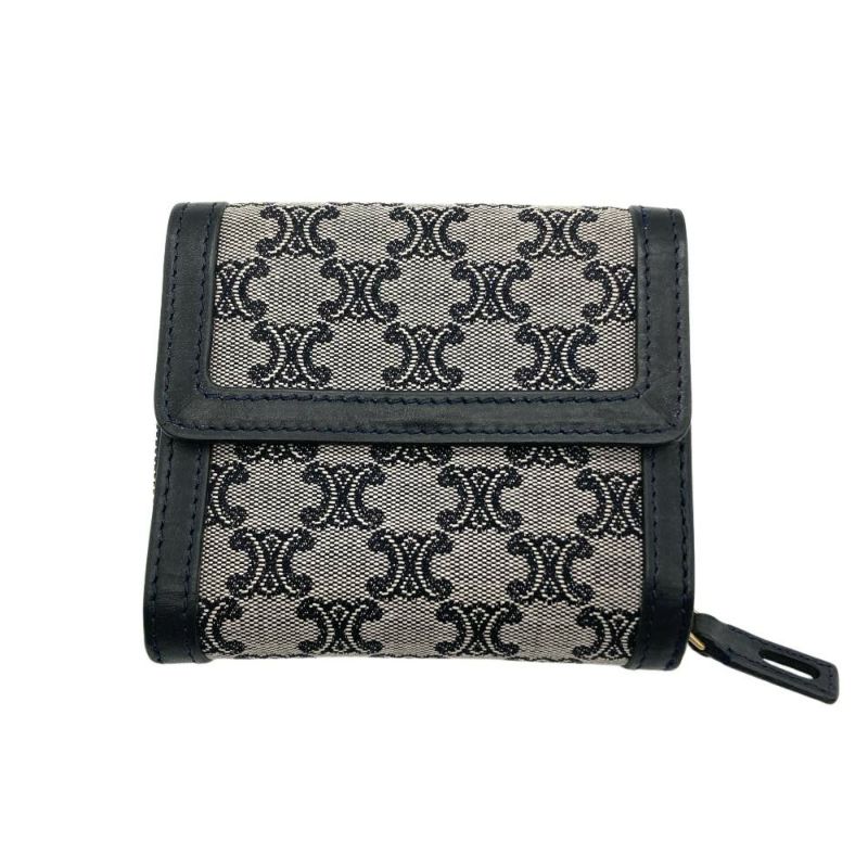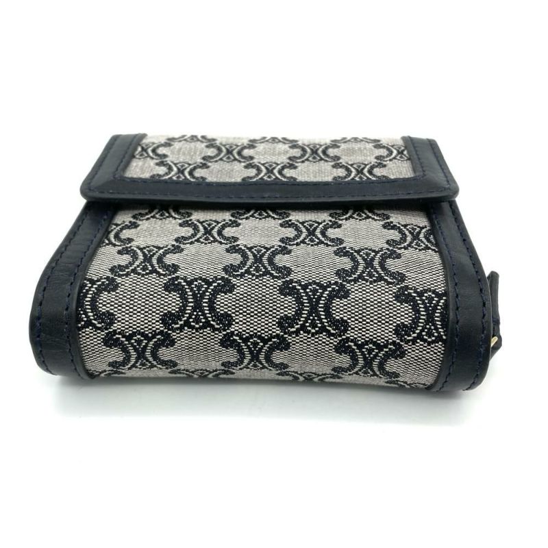 5. セリーヌ CELINE トリオンフ 三つ折り財布 キャンバス レザー ネイビー レディース【中古】