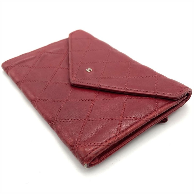 3. シャネル CHANEL ビコローレ 二つ折り財布 ラムスキン レッド ゴールド金具 マルチケース カードケース レディース【中古】