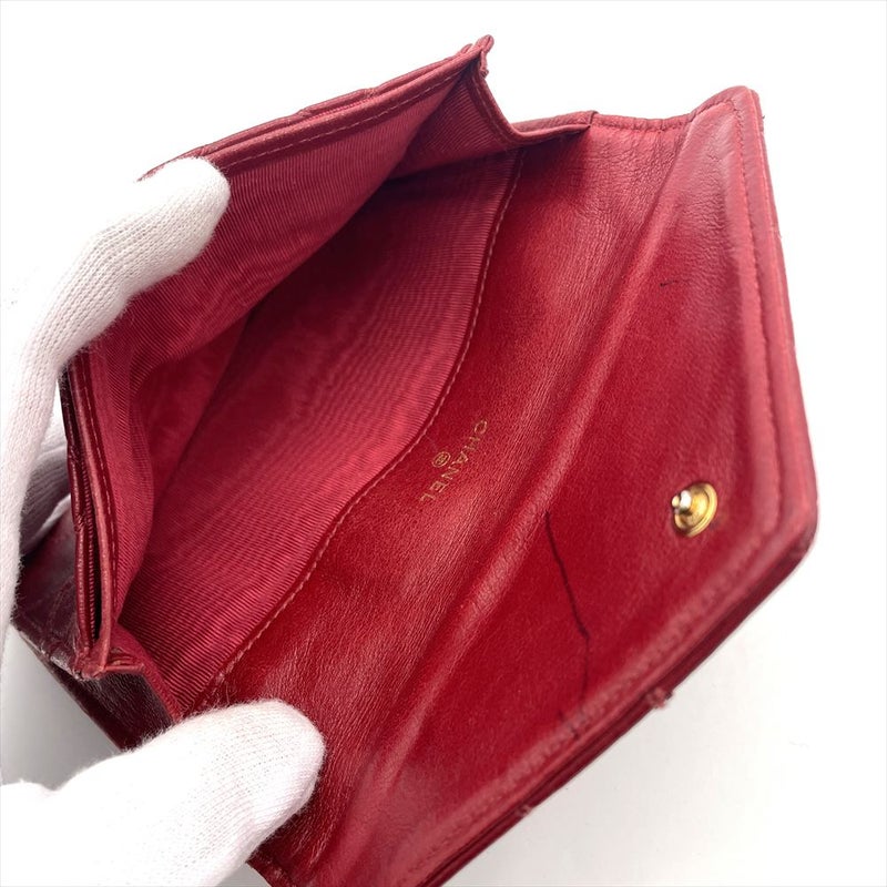 4. シャネル CHANEL ビコローレ 二つ折り財布 ラムスキン レッド ゴールド金具 マルチケース カードケース レディース【中古】