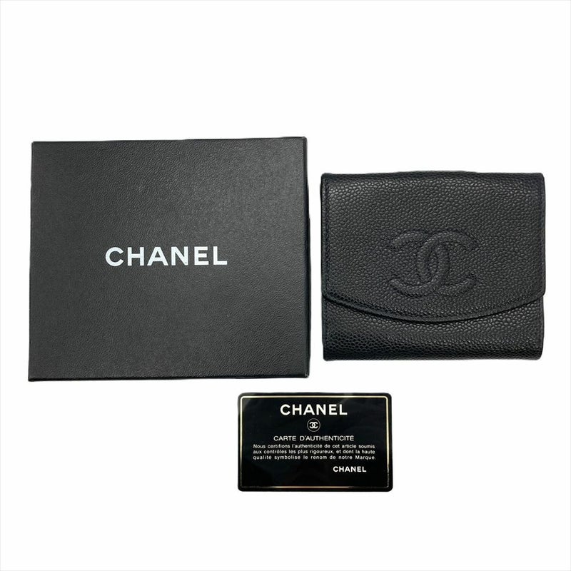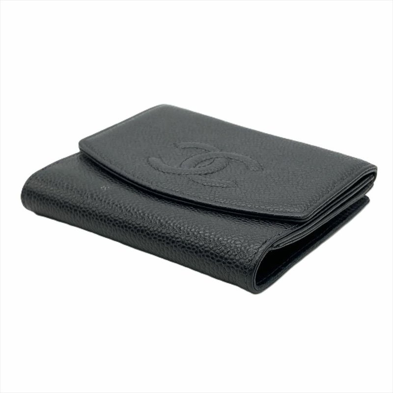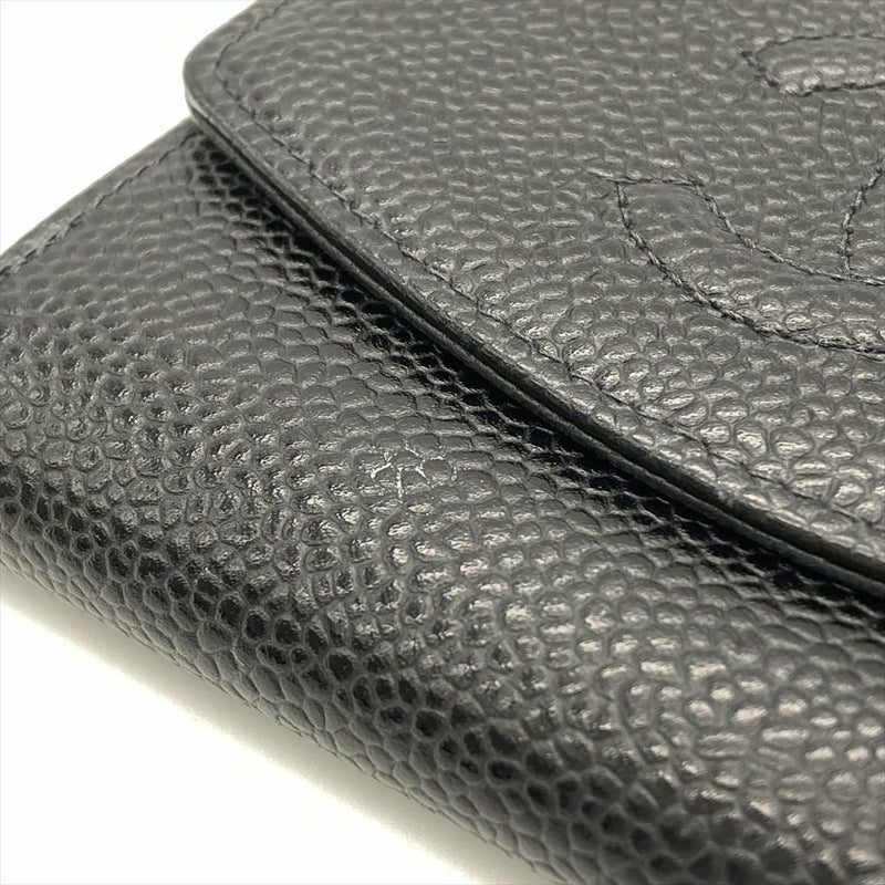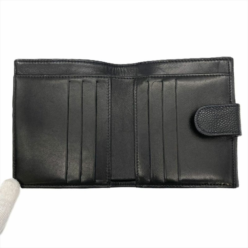 シャネル CHANEL ココマーク Wホック 二つ折り財布 キャビアスキン A13496 ブラック 6番台【中古】