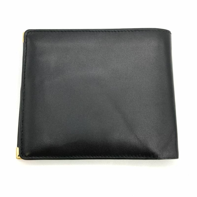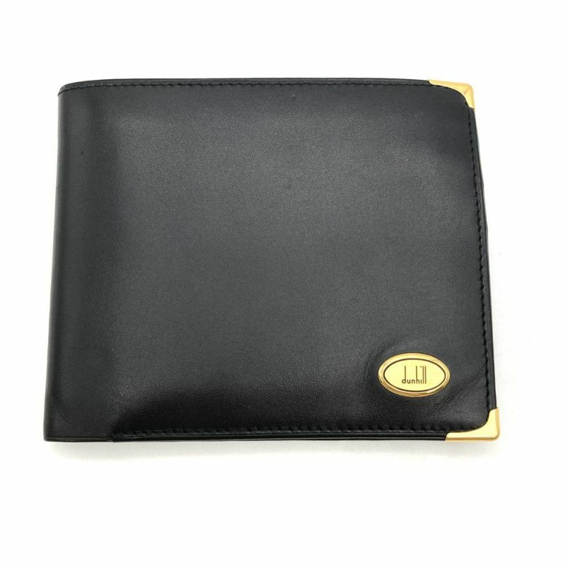 ダンヒル Dunhill 二つ折り財布 レザー ブラック ロゴ プレート メンズ【中古】