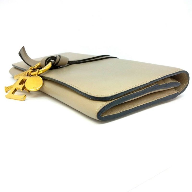 3. クロエ Chloe アルファベット ウォレット 長財布 レザー シャイニーレザー グレー ゴールド金具【中古】