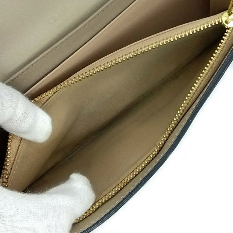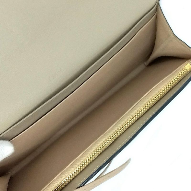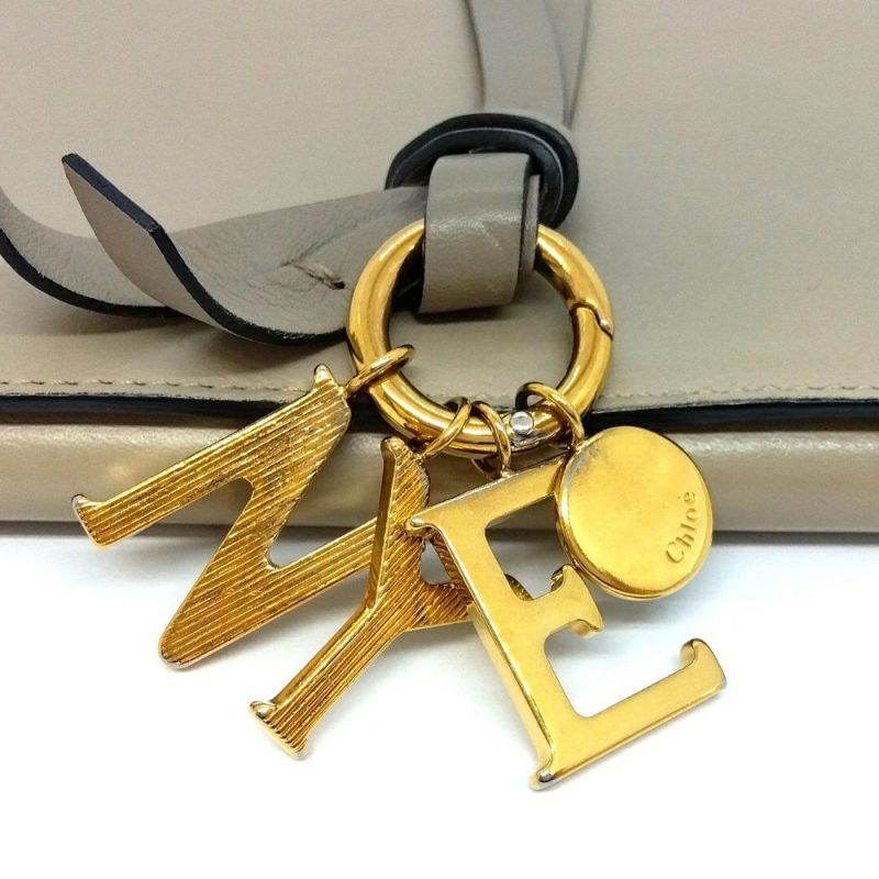 5. クロエ Chloe アルファベット ウォレット 長財布 レザー シャイニーレザー グレー ゴールド金具【中古】