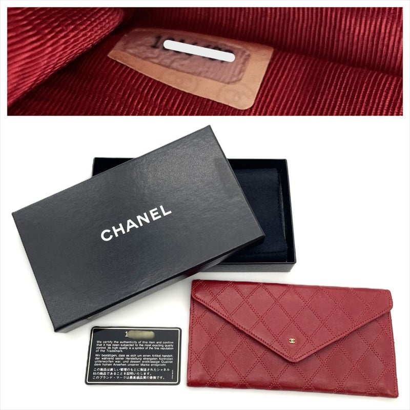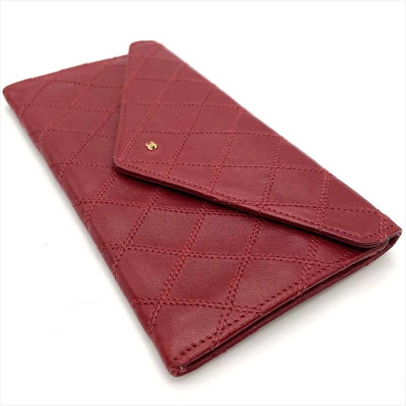 5. シャネル CHANEL ビコローレ 長財布 ラムスキン レッド ゴールド金具 レディース【中古】