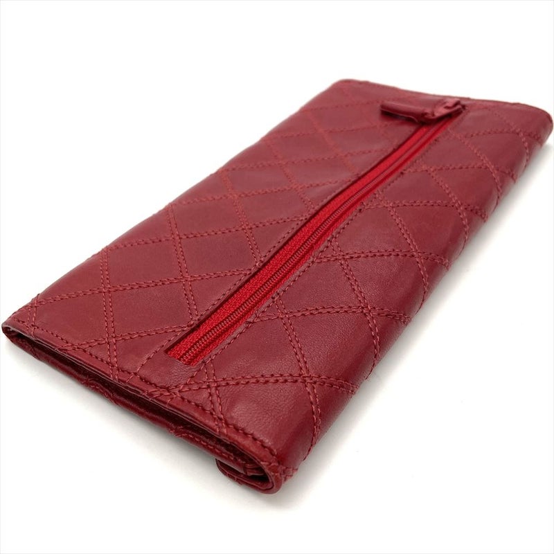 3. シャネル CHANEL ビコローレ 長財布 ラムスキン レッド ゴールド金具 レディース【中古】