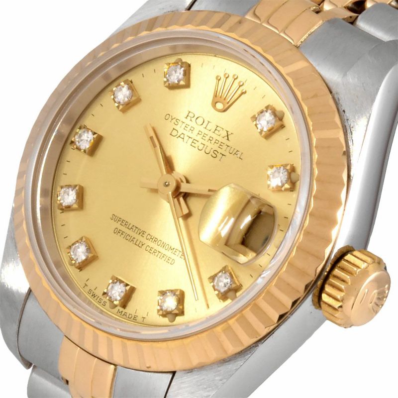 - ロレックス ROLEX 69173G デイトジャスト E番(1990~91年頃製造) 腕時計 シャンパン文字盤 YG×SS 10P ダイヤインデックス レディース【中古】