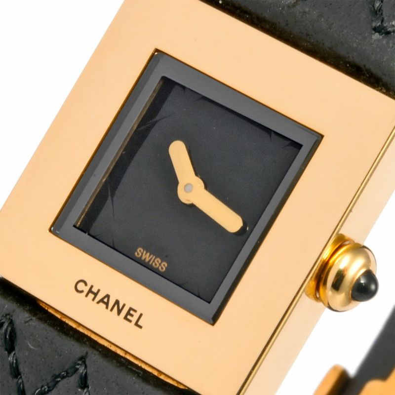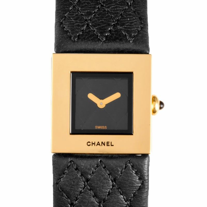 5. シャネル CHANEL マトラッセ H0109 腕時計 K18YG/レザーベルト クォーツ ブラック文字盤 レディース【中古】