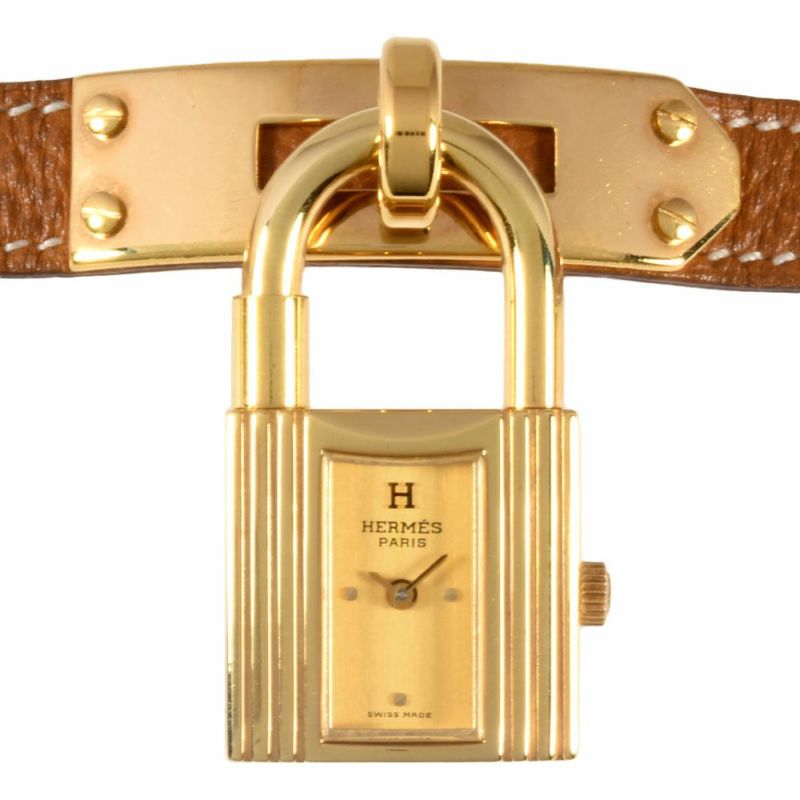 4. エルメス HERMES ケリーウォッチ 腕時計 シャンパンゴールド文字盤 〇T刻印(1990年製造)刻印 レディース【中古】