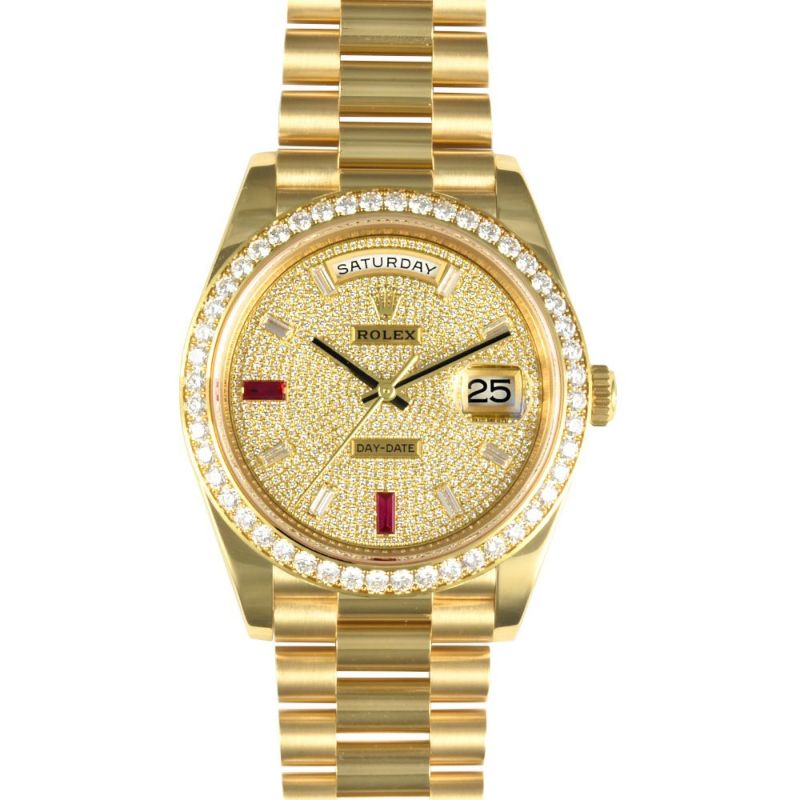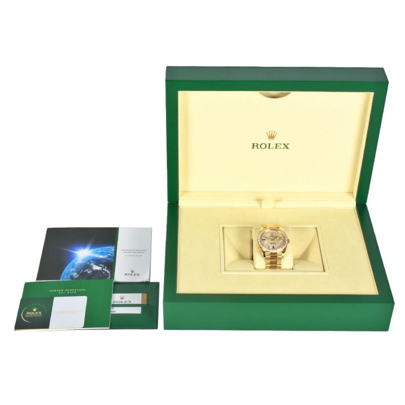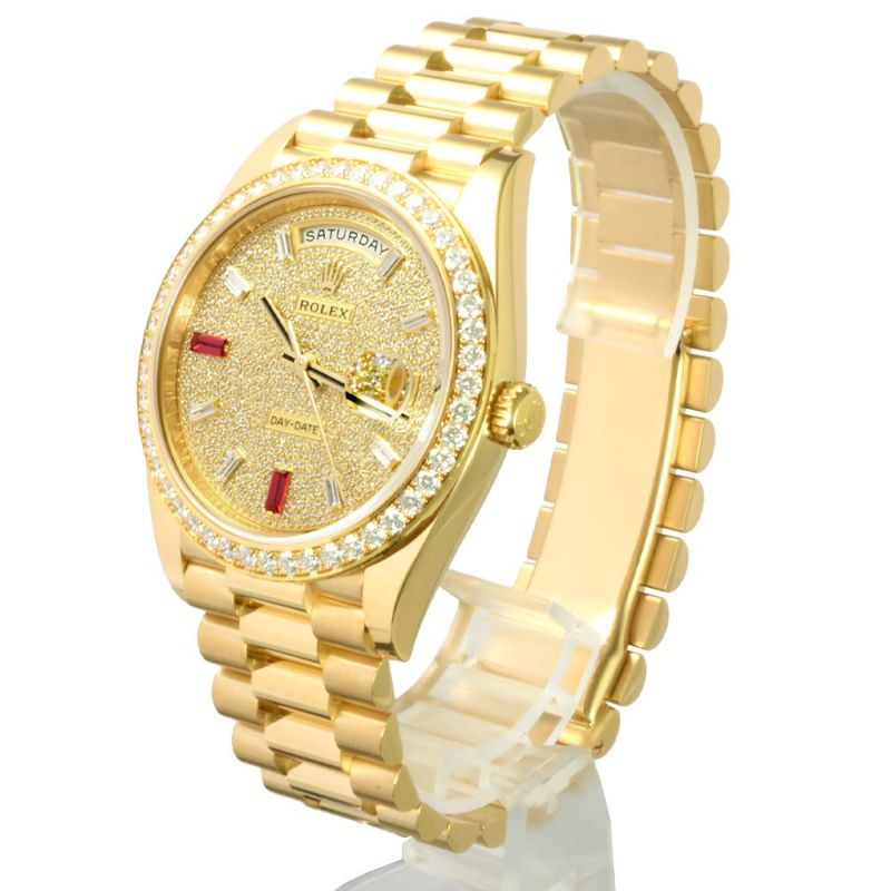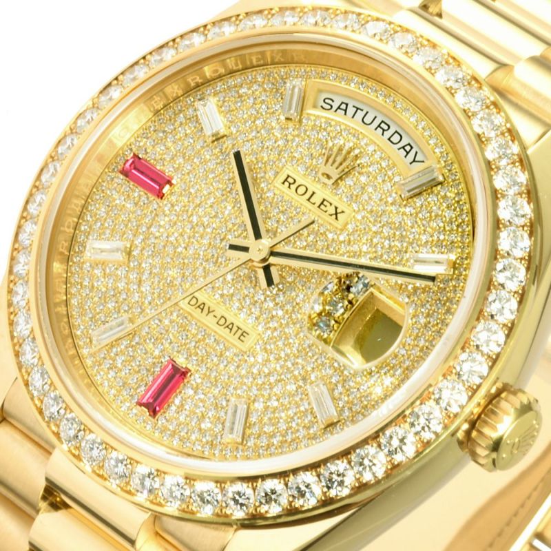 - ロレックス ROLEX 228348RBR デイデイト 40 ランダム 腕時計 パヴェダイヤ文字盤 ダイヤベゼル 8P ダイヤモンド 2P ルビー インデックス 金無垢 メンズ【中古】