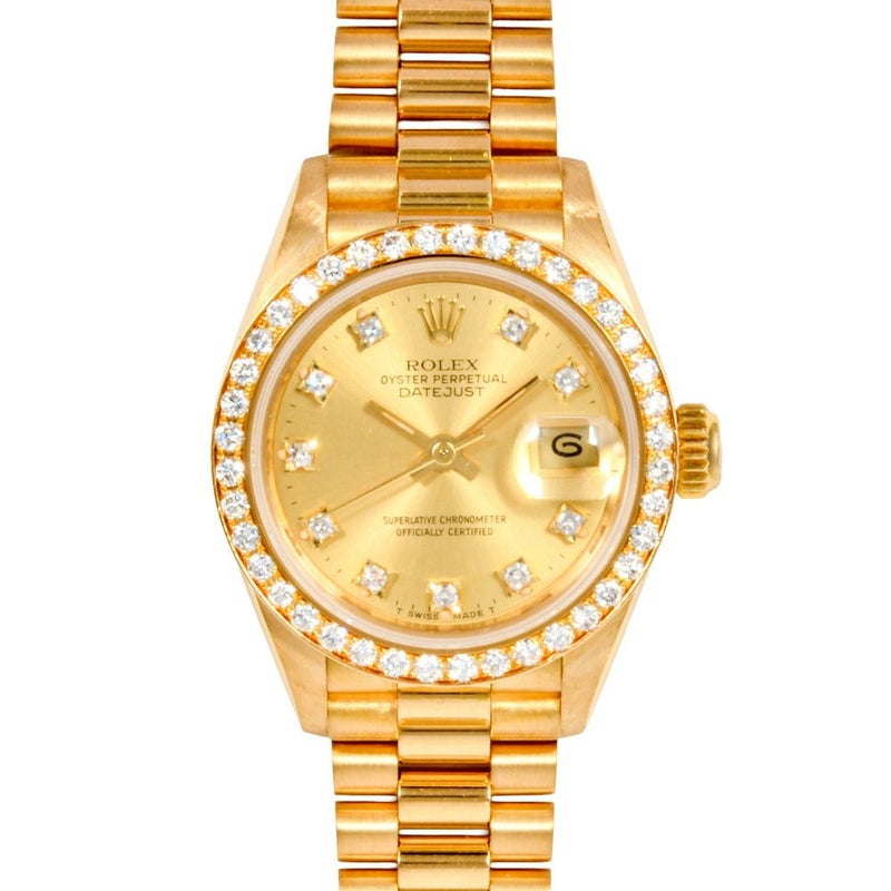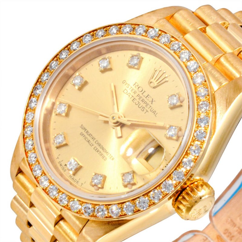 - ロレックス ROLEX 69138G デイトジャスト R番 腕時計 シャンパン文字盤 金無垢 K18YG 10Pダイヤ ダイヤベゼル レディース【中古】
