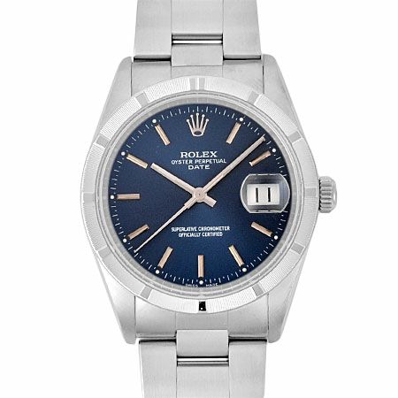 - ロレックス ROLEX オイスターパーペチュアル デイト エンジンターンドベゼル 15210 SS F番 メンズ 自動巻き 時計 ブルー文字盤【中古】