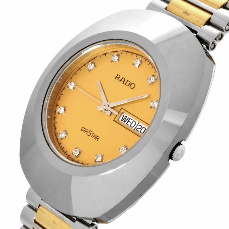 5. ラドー RADO ダイヤスター デイデイト 腕時計 ゴールド文字盤 クォーツ コンビカラー メンズ【中古】