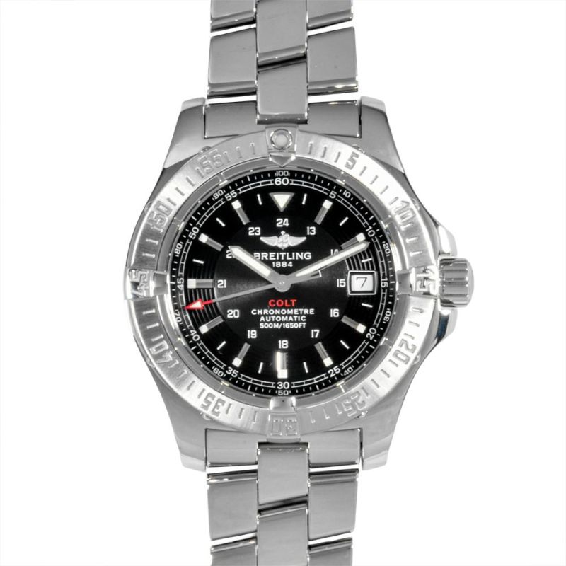 ブライトリング BREITLING A17380 コルト 腕時計 ブラック文字盤 SS デイト メンズ【中古】