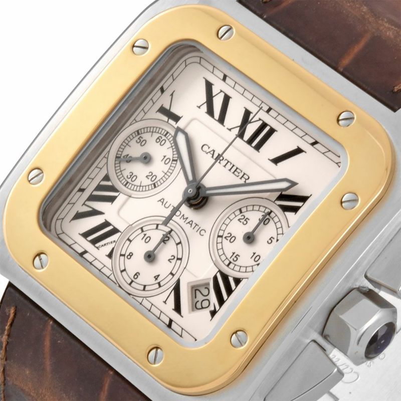 - カルティエ Cartier W20091X7 サントス100 腕時計 ホワイト文字盤 クロノグラフ メンズ【中古】