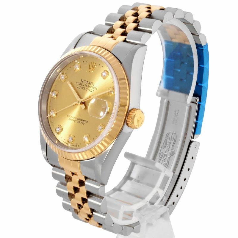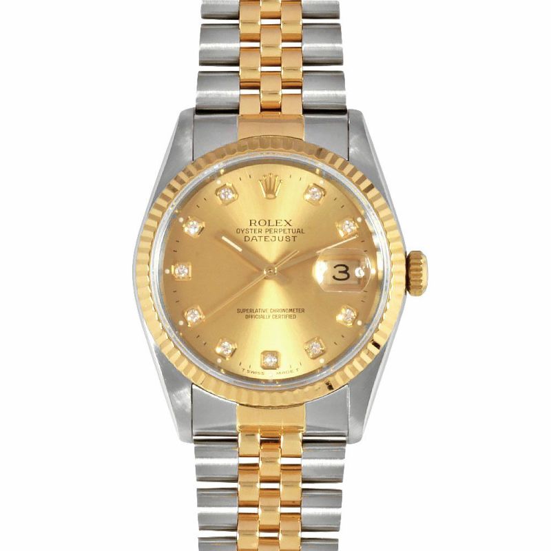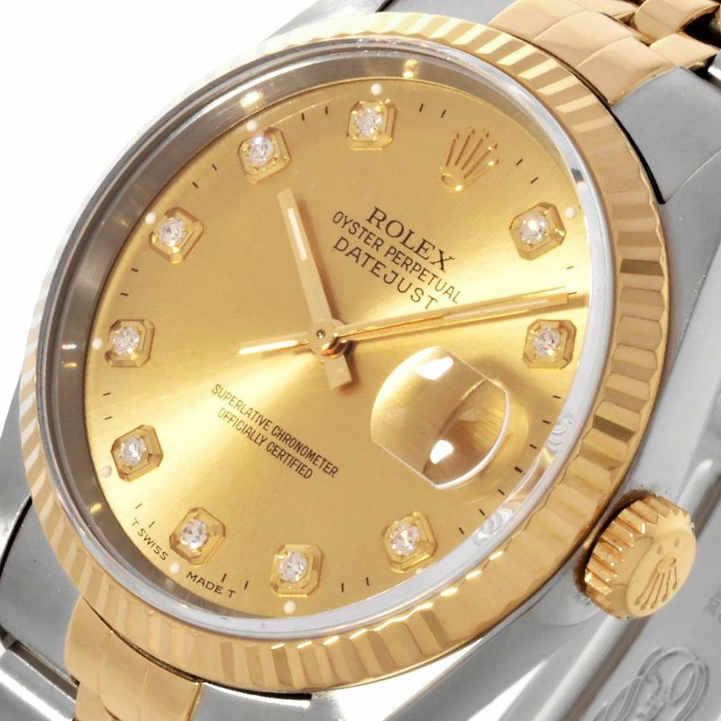 - ロレックス ROLEX 16233G デイトジャスト W番 腕時計 シャンパン文字盤 YG×SS コンビ 10P ダイヤインデックス メンズ【中古】